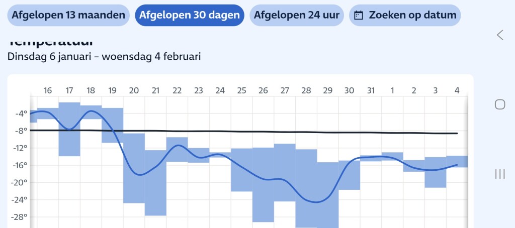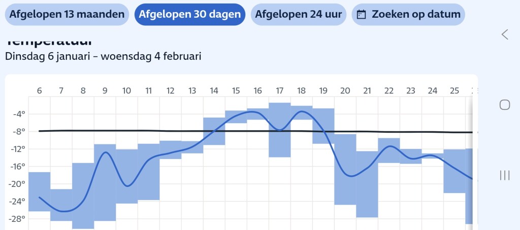 De afgelopen 30 dagen langdurig en soms ver onder het langjarig gemiddelde qua temperatuur