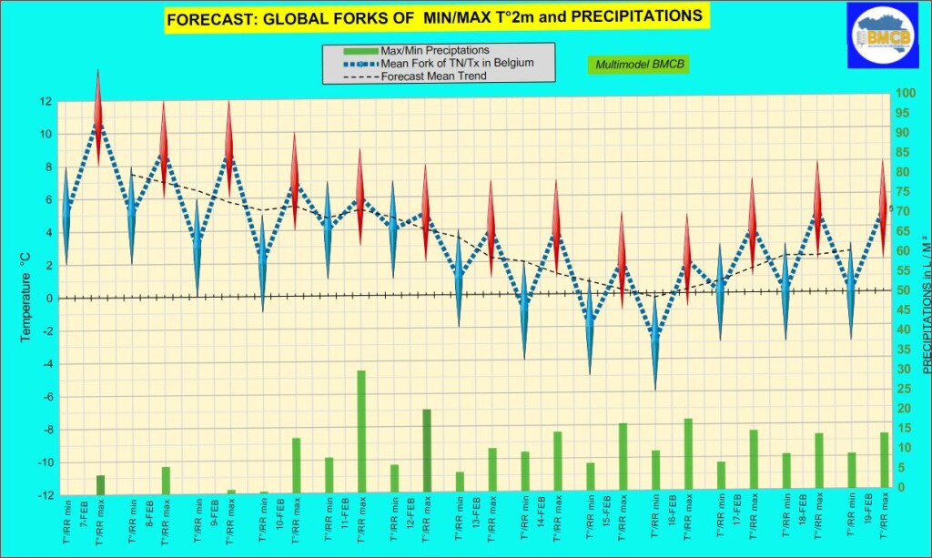 Update – 5 februari 2026 | 13u Weersverwachting voor België Analyse op basis van het BMCB-multimodel (operationele modellen en ensembles ICON, AIFS, GFS, ECMWF)