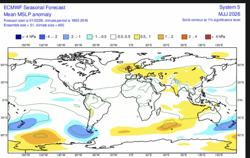 EC-lente verwachting. Groenlandhoog. Negatieve AO/NAO.
