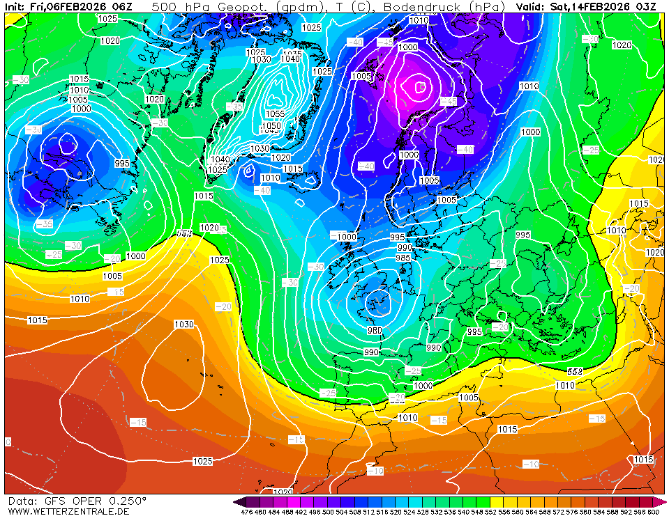 Depressie ten Z/ ZW van ons. Rugje op de oceaan, dat lijkt me gunstig.