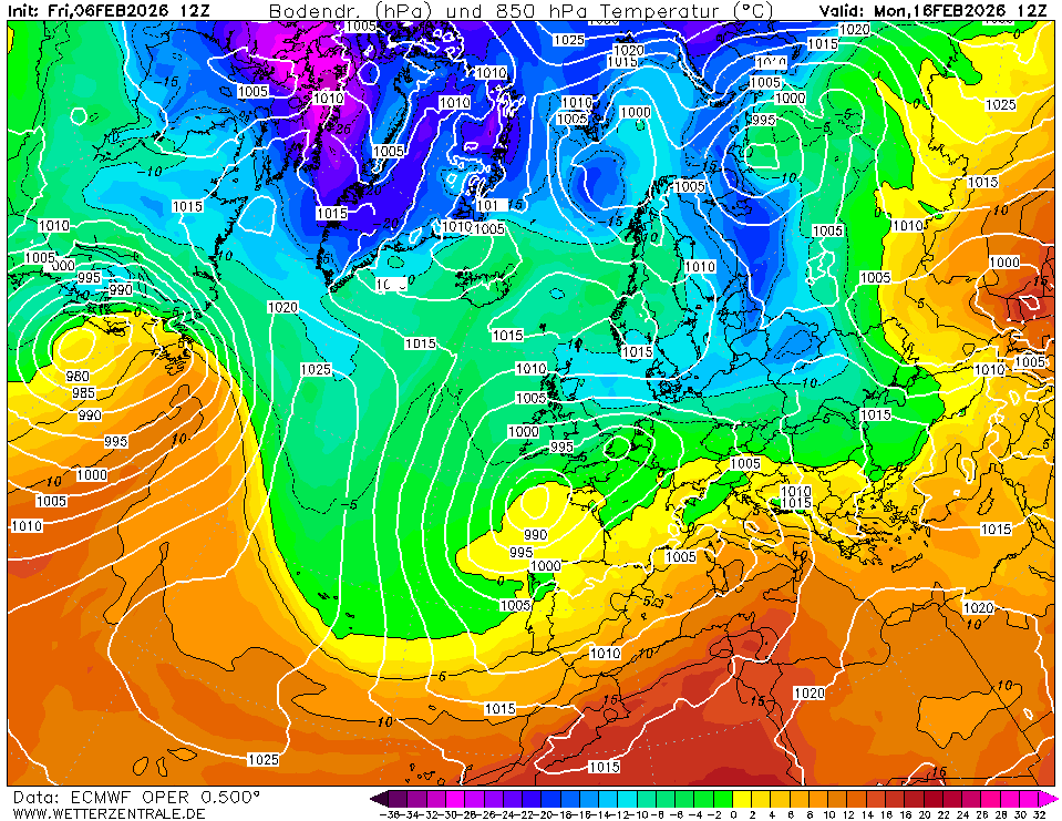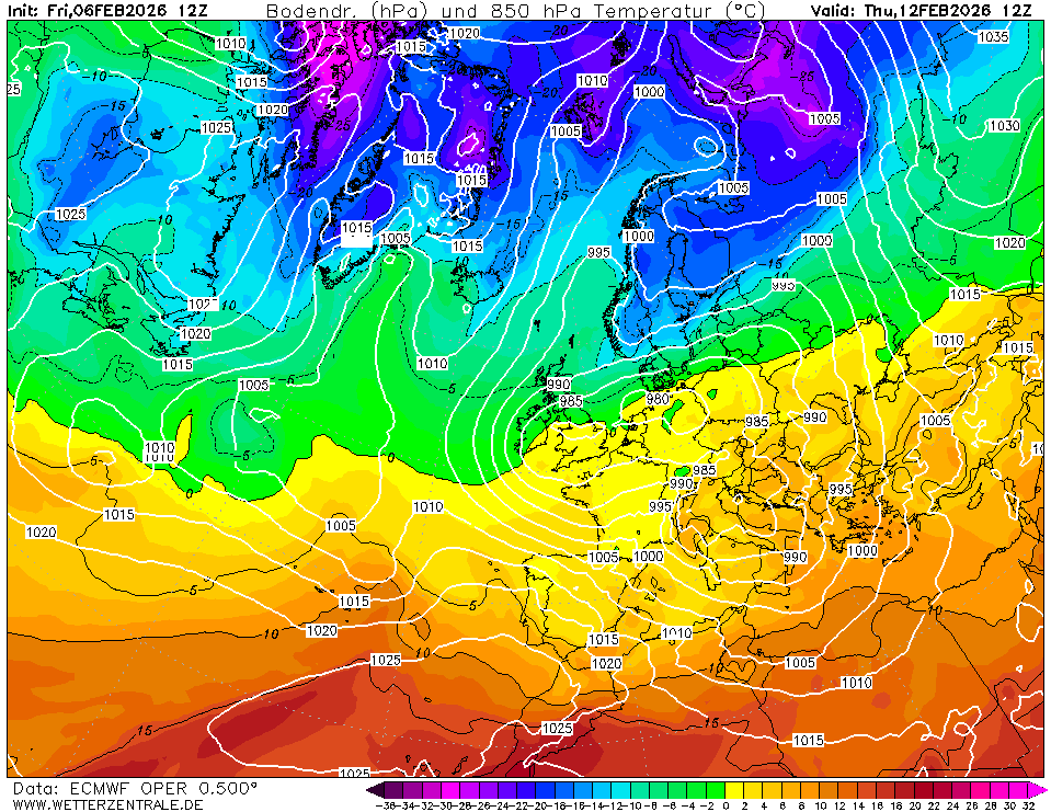 De 144u-kaart de lagedruk te noordelijk. Hierna komt de kou alsnog. Edit. Dwz geen ijsdagen, paar graden boven het vriespunt.