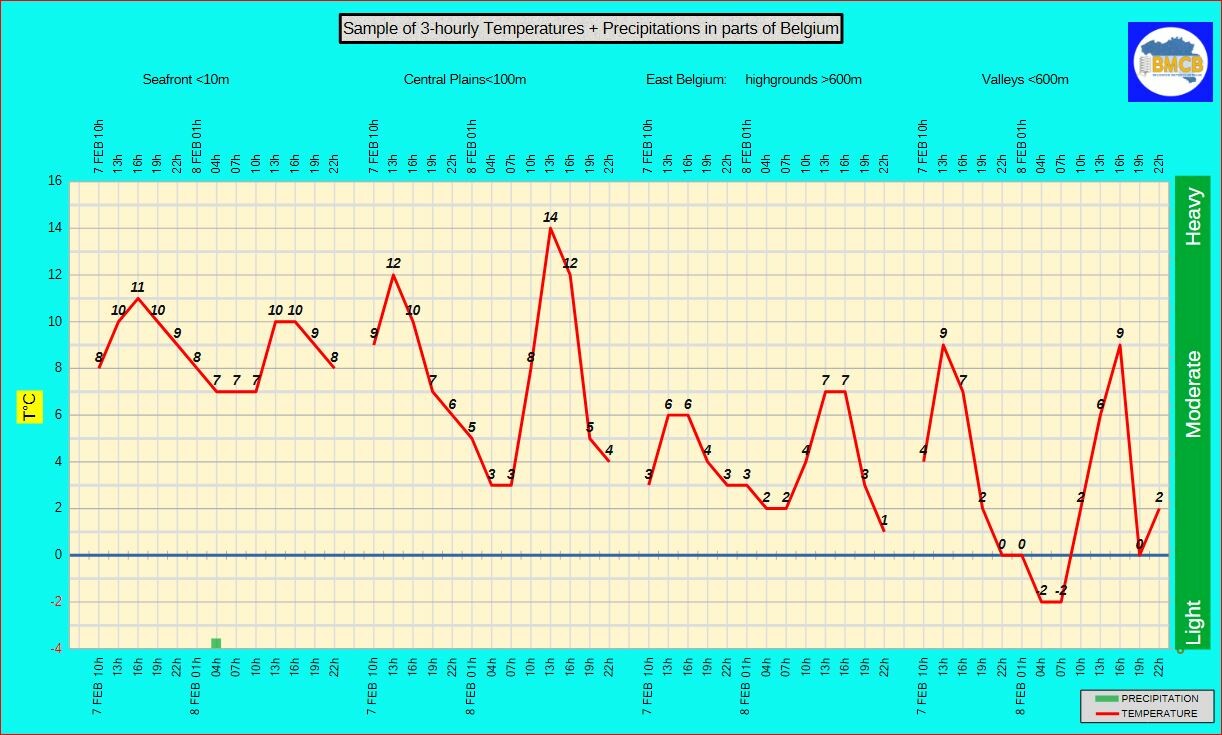 MorgenVoormiddag: hardnekkige mist en lage bewolking in zuidelijk Luik en oostelijk Belgisch Luxemburg. Elders zonnig, behalve in het westen waar het bewolkt blijft.