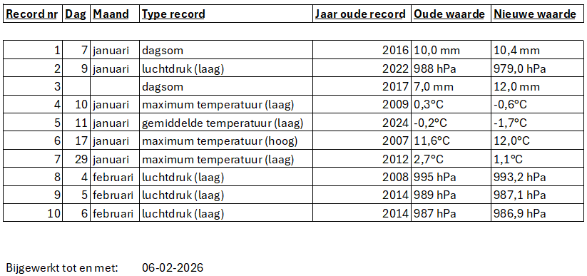 In totaal 10 nieuwe dagrecords voor hier dit nog prille jaar, waarbij opvalt dat de nodige oude records gesneuveld zijn.
