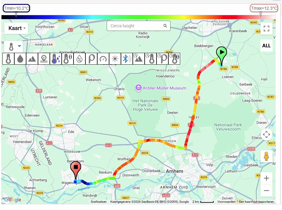 Op de terugweg na een wandeling bij Loenen op de hoogste toppen () van de Veluwe ruim 12 graden. Aan de voet van de Wageningse Berg (N225) in de bossen aanzienlijk koeler (rond de 10 graden).
