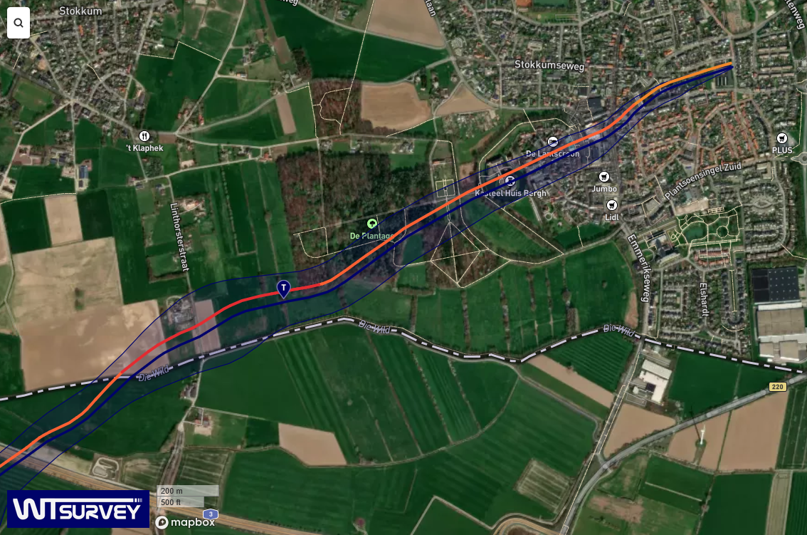 Schneisenlänge: 5.64 km (DE 3.47 / NL 2.17)