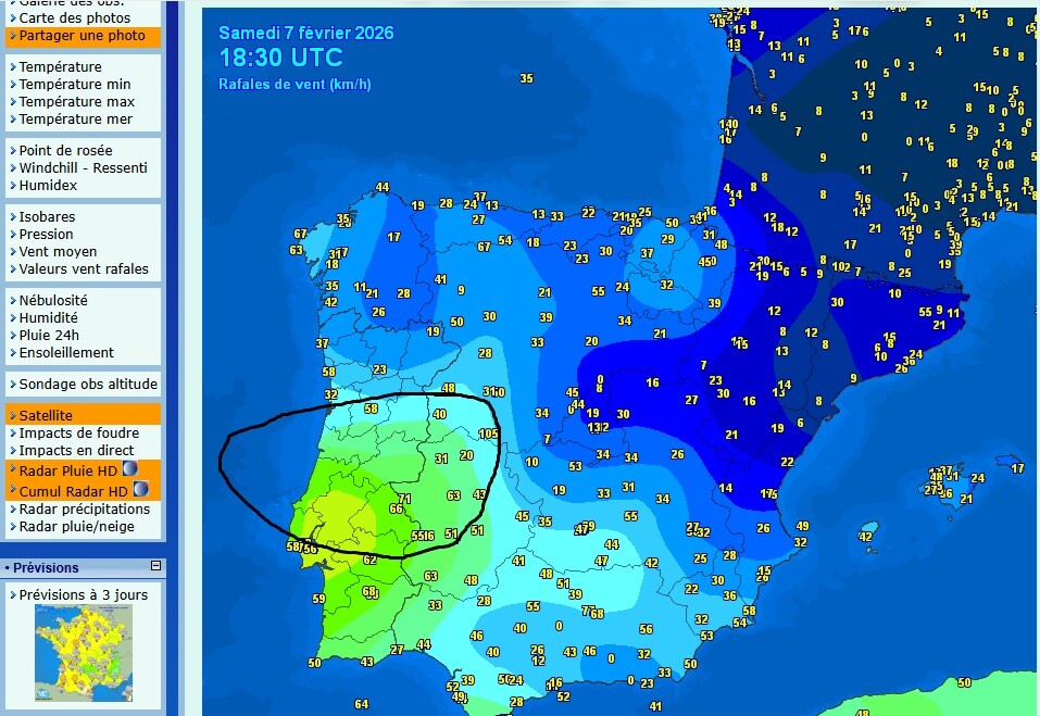 Die kaart toont overigens niet de windstoten in Leiria en Coimbra.