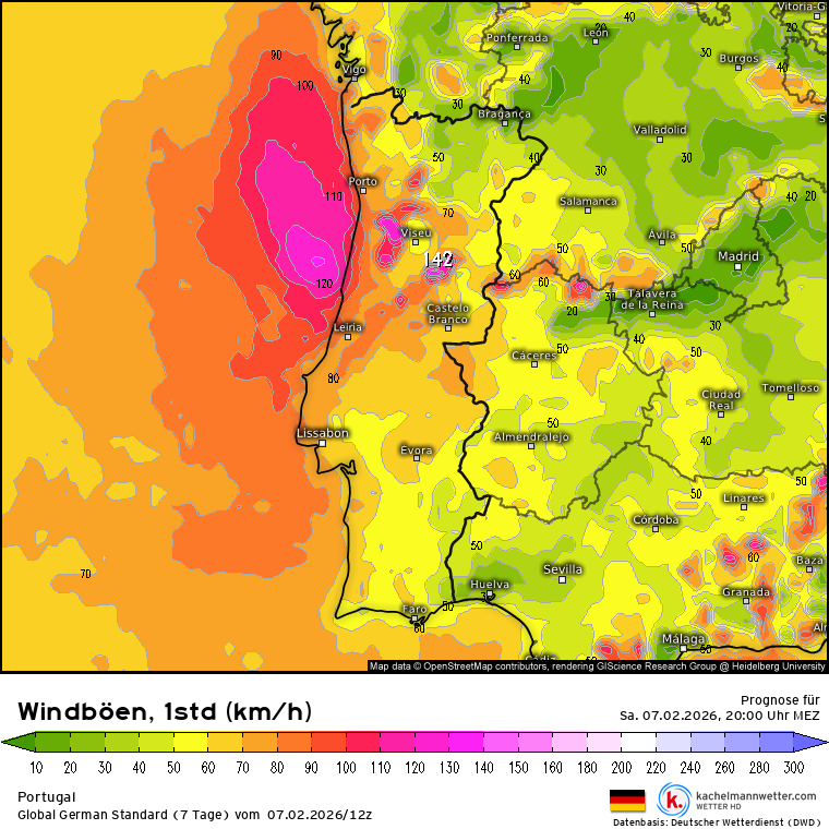Die kaart toont overigens niet de windstoten in Leiria en Coimbra.