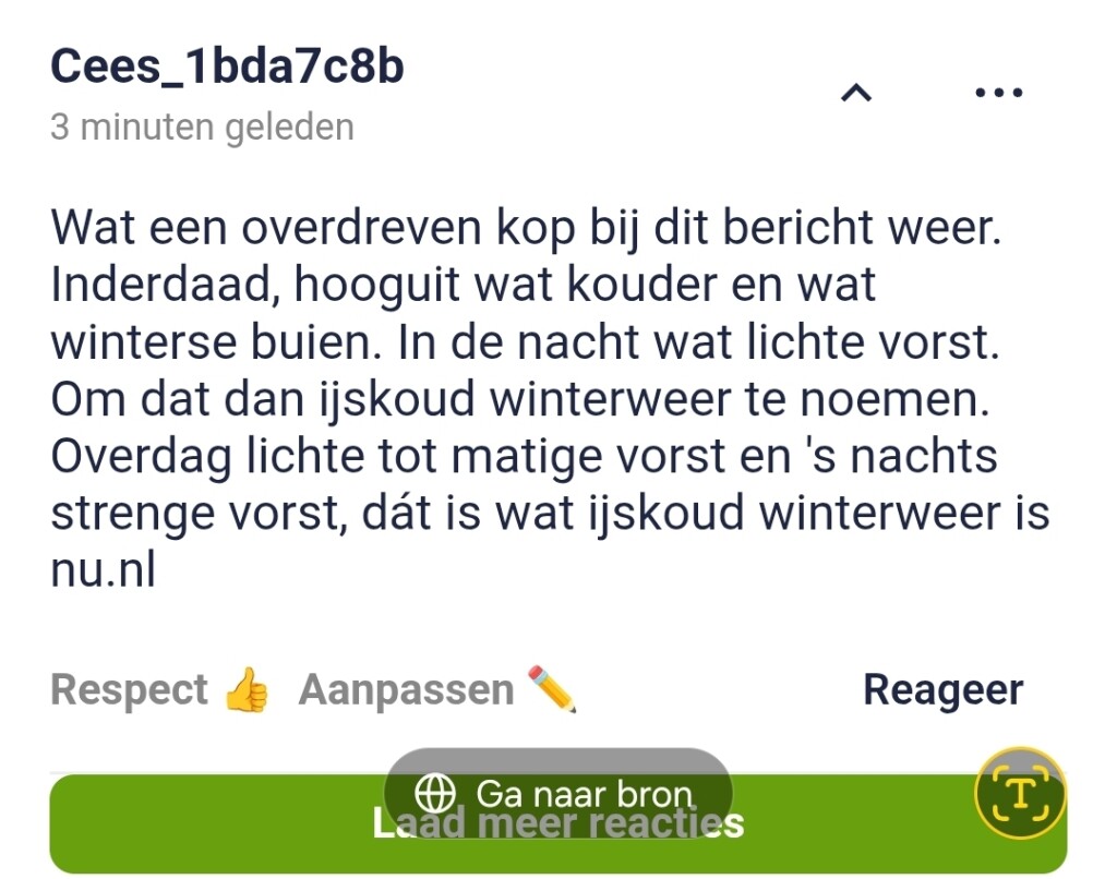 Re: "Tot dinsdag lijkt het bijna lente, daarna keert winter ijskoud te