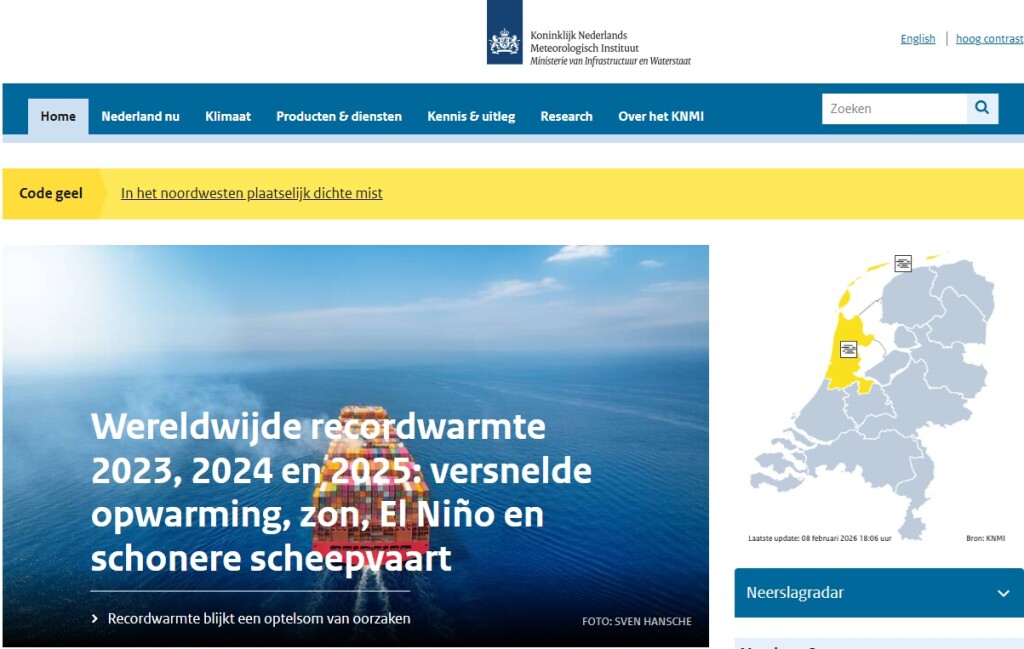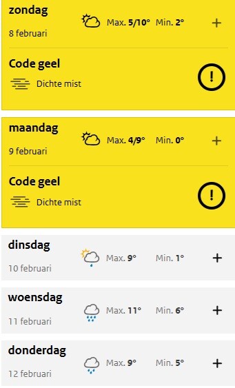 Ook iets verder naar onderen op de homepage staat de code geel waarschuwing in beeld