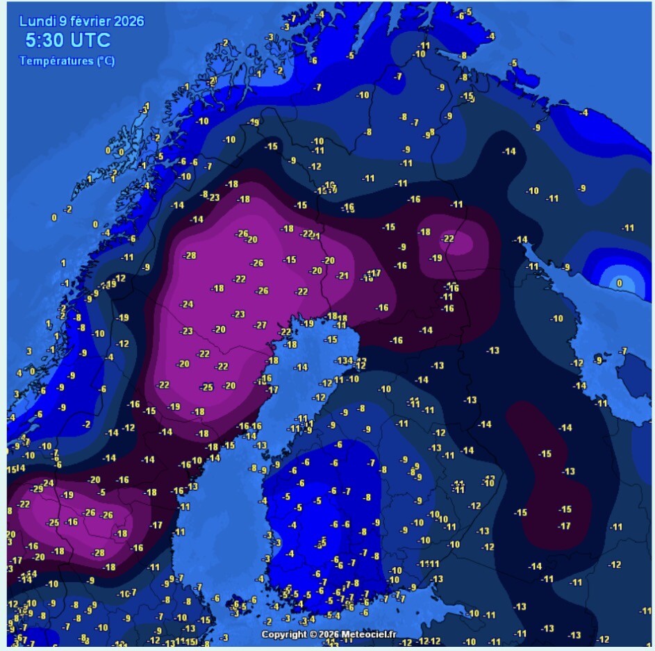 De wind waait nu stevig door uit het westen tot zuidwesten en het is vannacht bewolkt geraakt. Daardoor is de temperatuur alleen maar opgelopen naar inmiddels -5,6C, zo warm is het sinds 22 januari niet geweest!