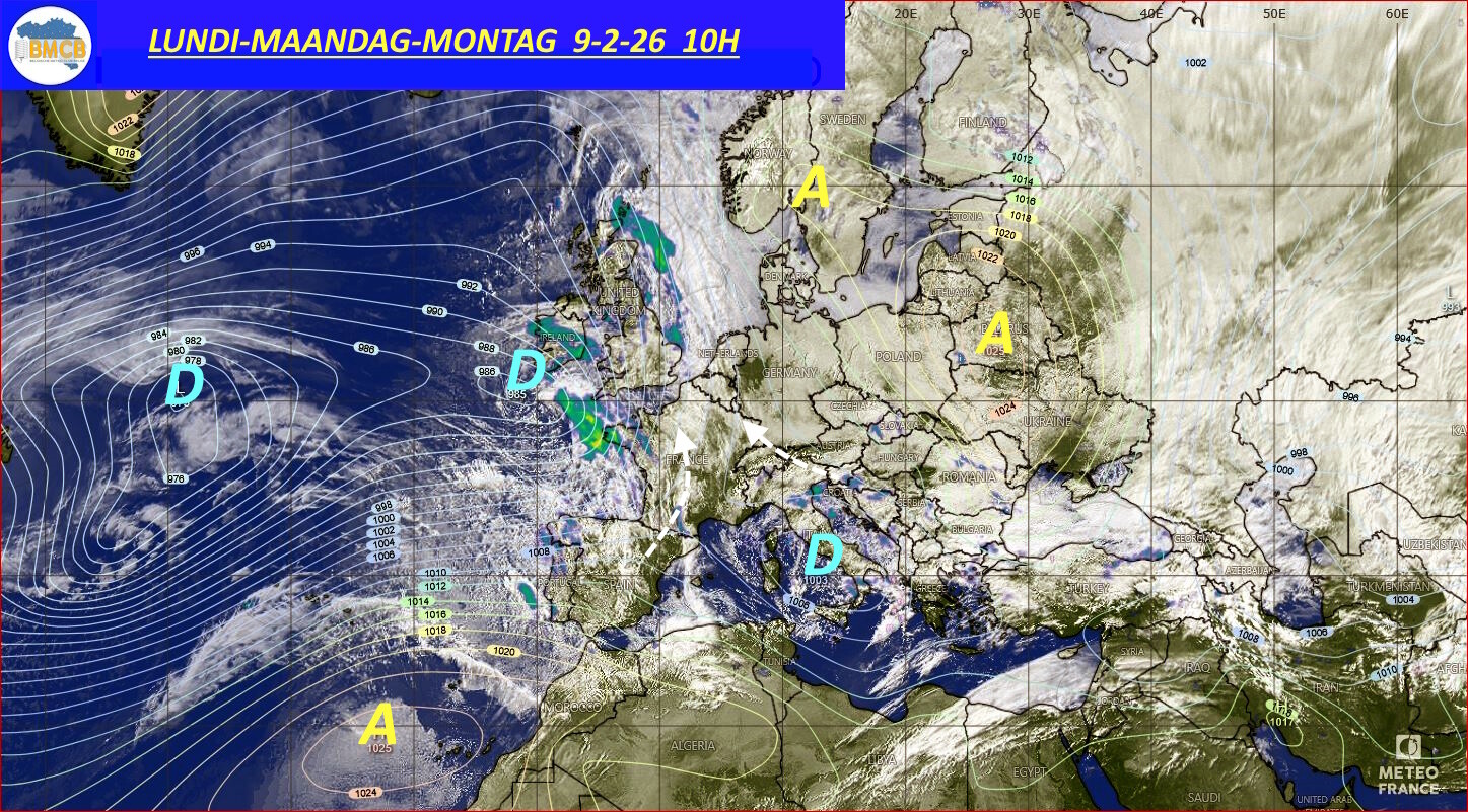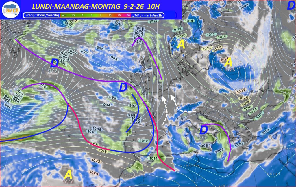 De bijbehorende, vrij actieve regenzones bereiken onze regio's vanaf de nacht van dinsdag op woensdag. Daarbij wordt zachte lucht van maritieme oorsprong aangevoerd.