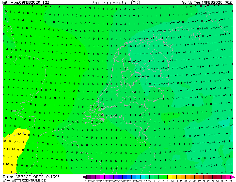 Het is hier net breed opgeklaard. Lage stratus ineens verdwenen. Wel wat hoge sluiers her en der. Heeft het nu nog waarde dat de bodem in NO helft Nederland nog steeds koud is? Aperge komt met een -1°C en -2° C in delen van Drenthe. Andere modellen slechts net onder 0°C. Het is hier nu 2,5 °C. Het lijkt mij toch dat de minima zo maar stuk lager kunnen uitvallen? Heel veel energie is daar niet voor nodig met de sloten nog vol met ijs. Het zal vast ook van af hangen hoe snel de mist weer komt opzetten.