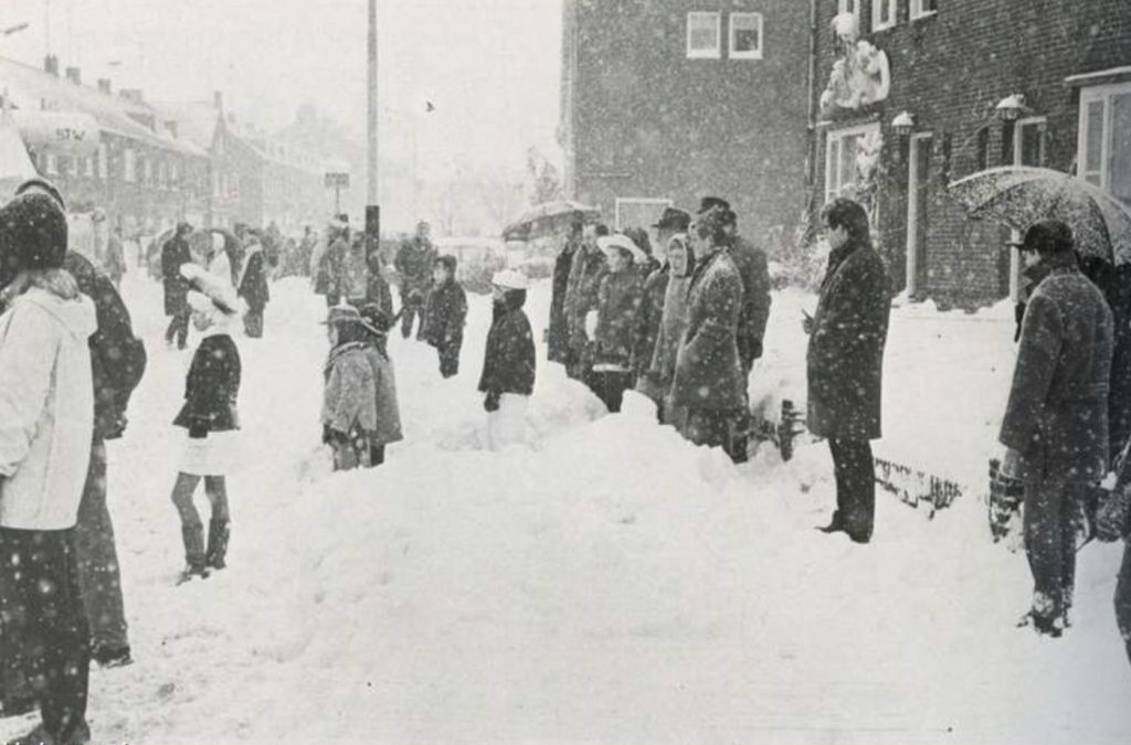 De sneeuw met carnaval 1969. Ongekende situatie hier, deze foto is van carnavalszondag, toen in stadsdeel Blerick kon toen de optocht nog vertrekken. In Venlo-centrum kon dat op maandag echt niet met 80 cm sneeuw!