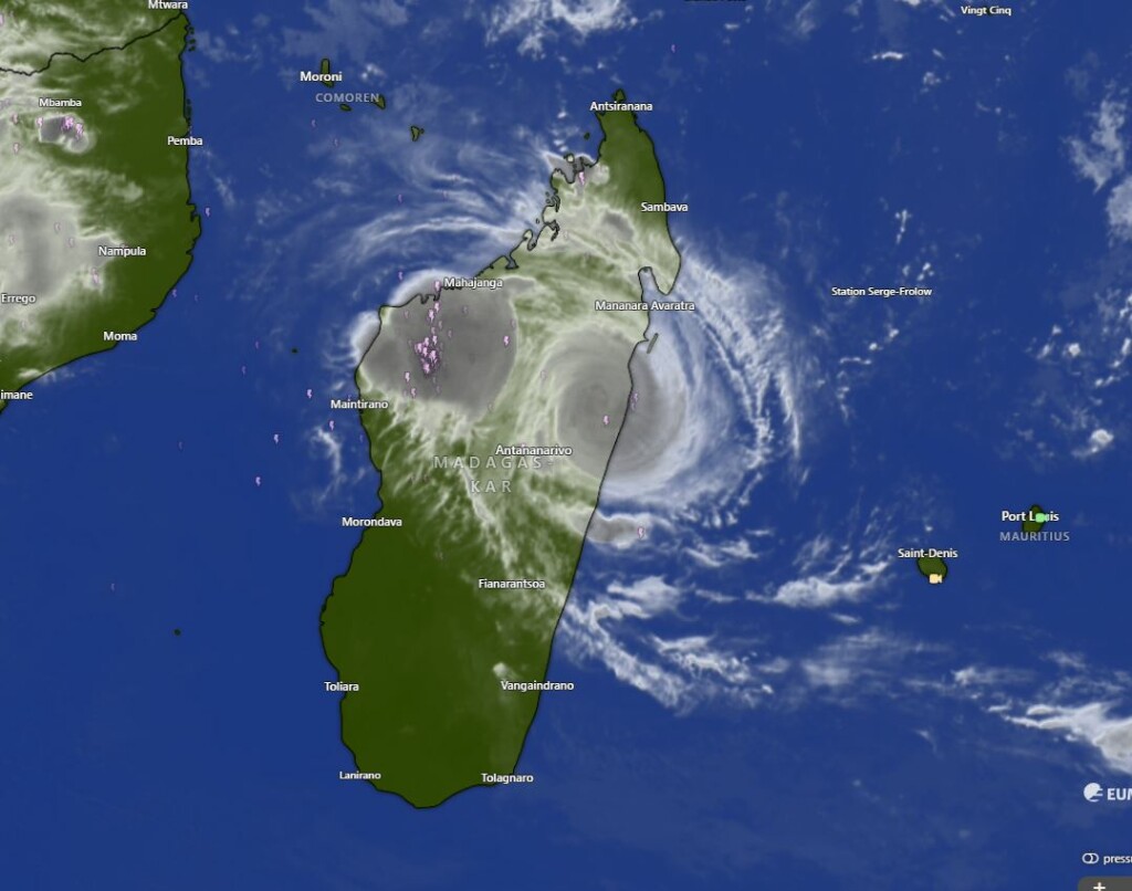 Op de sat is er bizarre inductie van een stevig onweerscomplex over vasteland met véél bliksemactiviteit