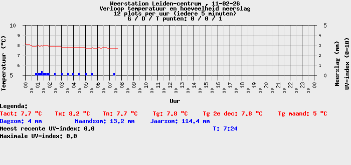 Met qua neerslag een dagrecord van slechts 8 mm en al 4 mm in de regenmeter, is de kans reeel dat ook dit record (ook uit 2007) vandaag verbroken gaat worden.