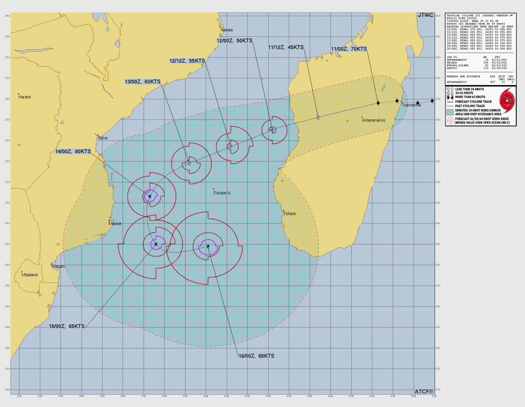 Mijn collega's op schip zijn nu net Durban binnen gelopen. De bestemming is nog steeds Mauritius. En dan maar afwachten wat systeem verder gaat doen. Het verdere pad van Gezani is bijzonder te noemen. Ipv koers richting vaste land lijkt Gezani een bijna 180° turn te maken en nadert dan opnieuw Madagascar. Maar allemaal nog ver en onzeker. Maar het lijkt nog niet gedaan.