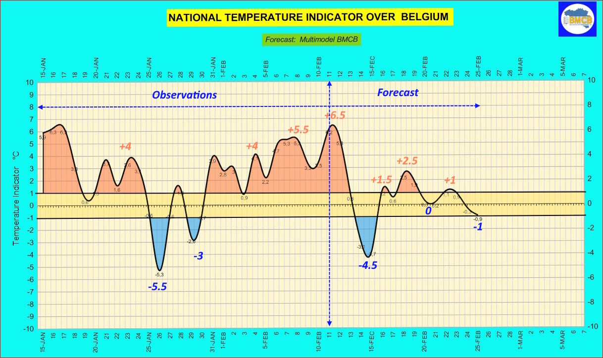 Daarna wordt een geleidelijke temperatuurstijging verwacht. De thermische index zou minstens tot 24 februari schommelen tussen 0 en +3.