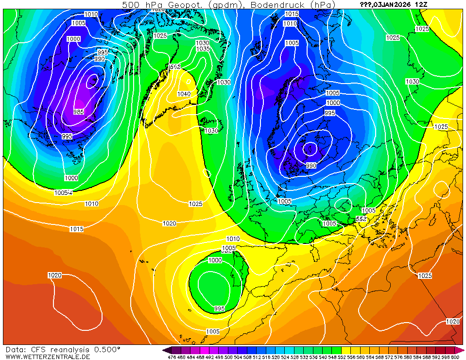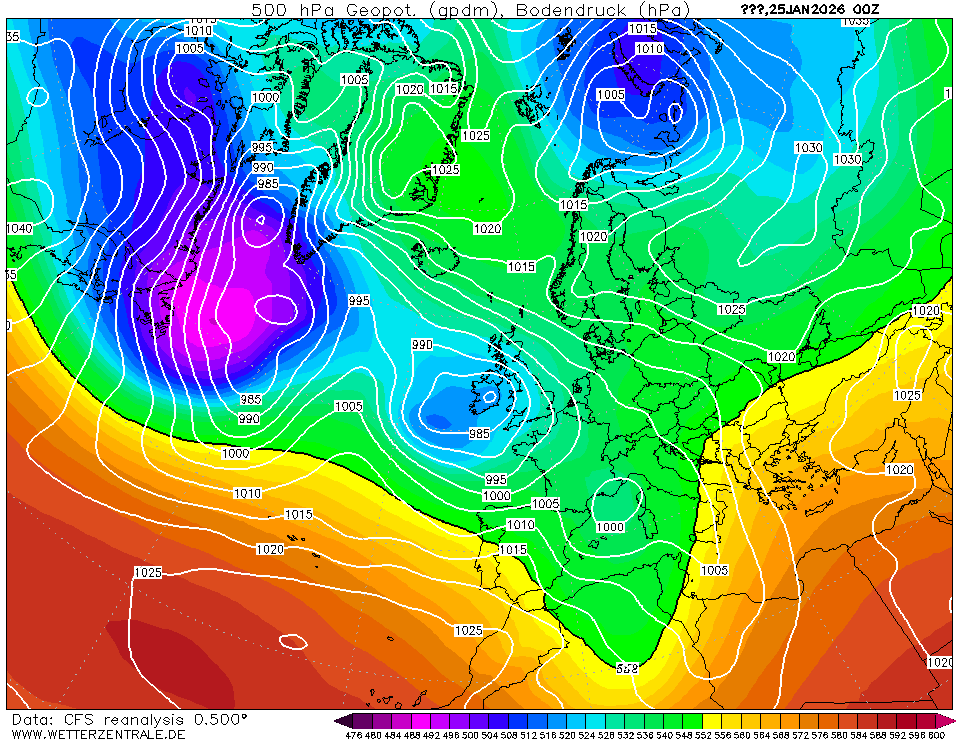 Alleen de noordelijk aangepunte Atlantische rug begin januari bracht onder invloed van de uitgezakte trog een glijbaan van tot maritiem polair getransformeerde maritiem Arctische lucht tijdelijk winterse omstandigheden in grote delen van ons taalgebied.