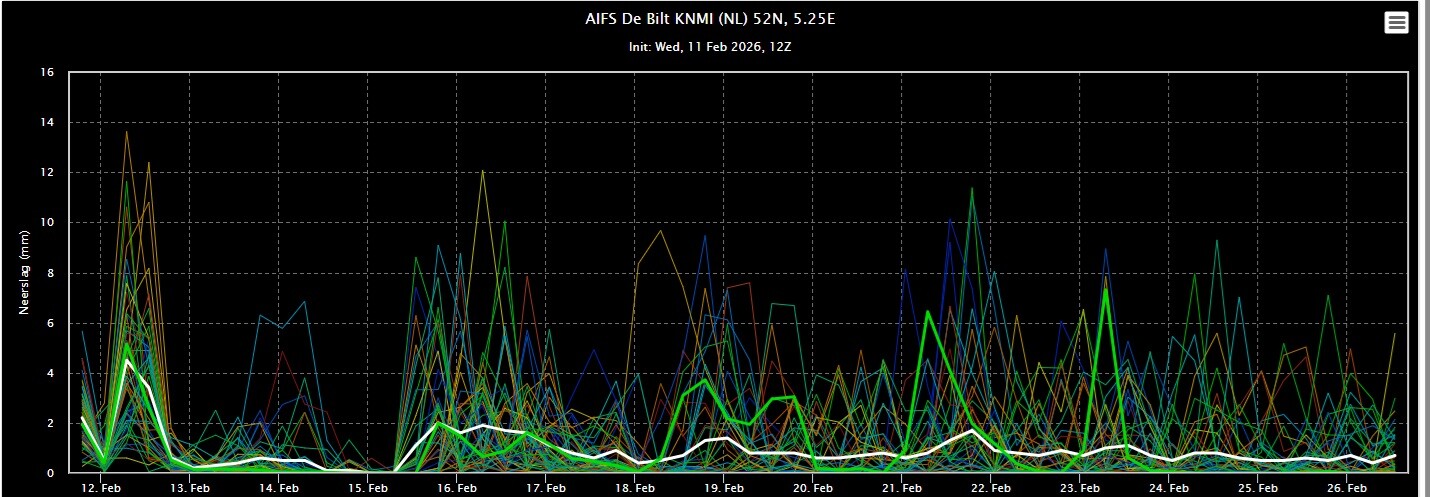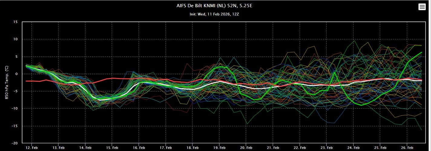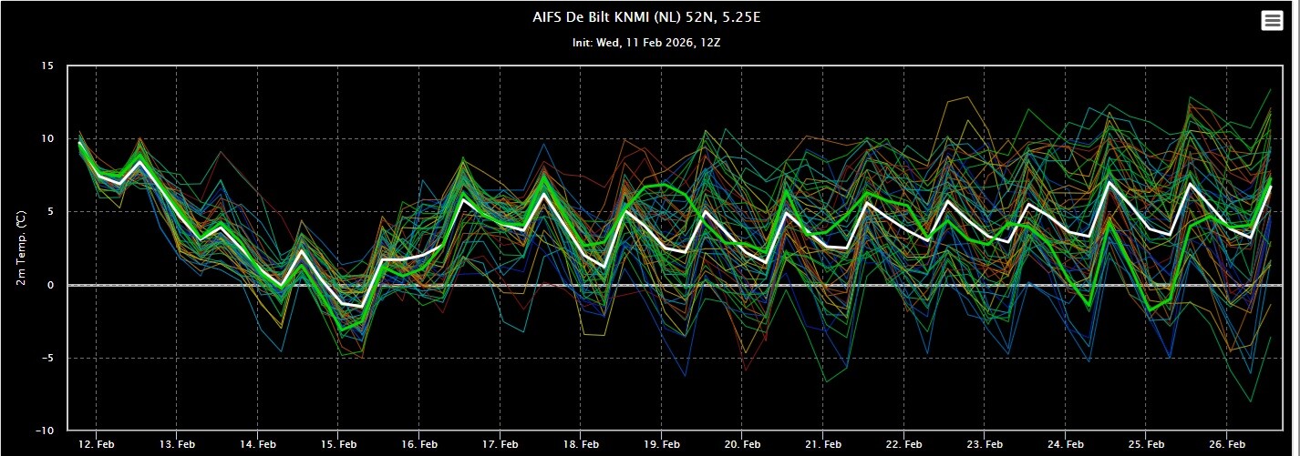 Voor wat betreft het huidige ensemble zit AIFS in grote lijnen op 1 lijn met het gemiddelde van GFS en EC.
