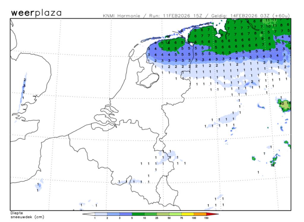 Bovenluchten zijn koud genoeg, maar aan de grond blijft het wel boven nul dus dit wordt hoogstens drab. Als het al blijft liggen, harmonie overdrijft wellicht.