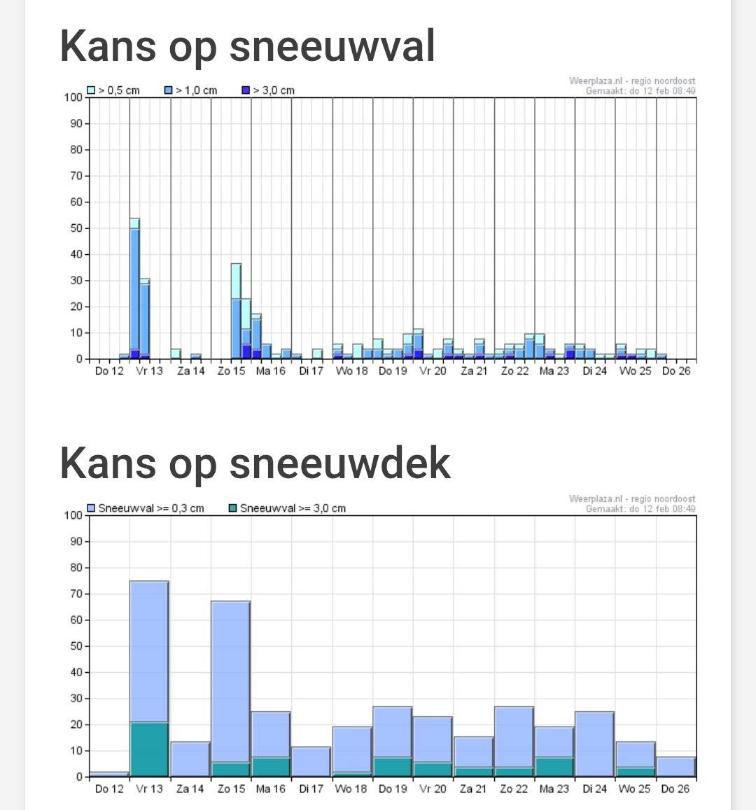 Regelmatig sneeuw kansen. Vrijwel gehele periode eigenlijk. Temperaturen toch licht winters te noemen.