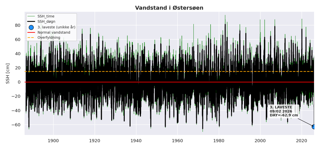 Extreem lage waterstand, zelfs voor de tijd van t jaar. Bij Denemarken loopt er meer water uit dan er in de zee aangevuld wordt.