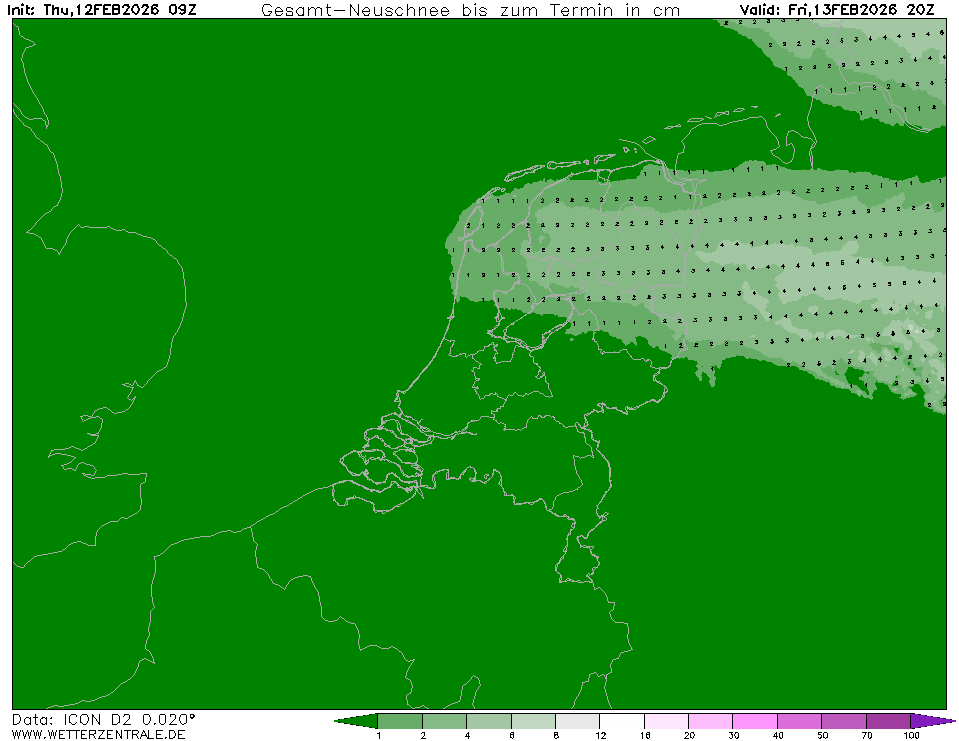 Harmonie 06z gaat morgen voor aardig sneeuwdek in het noorden