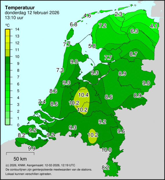 Zachtste plek van het land nu met 10.4°C