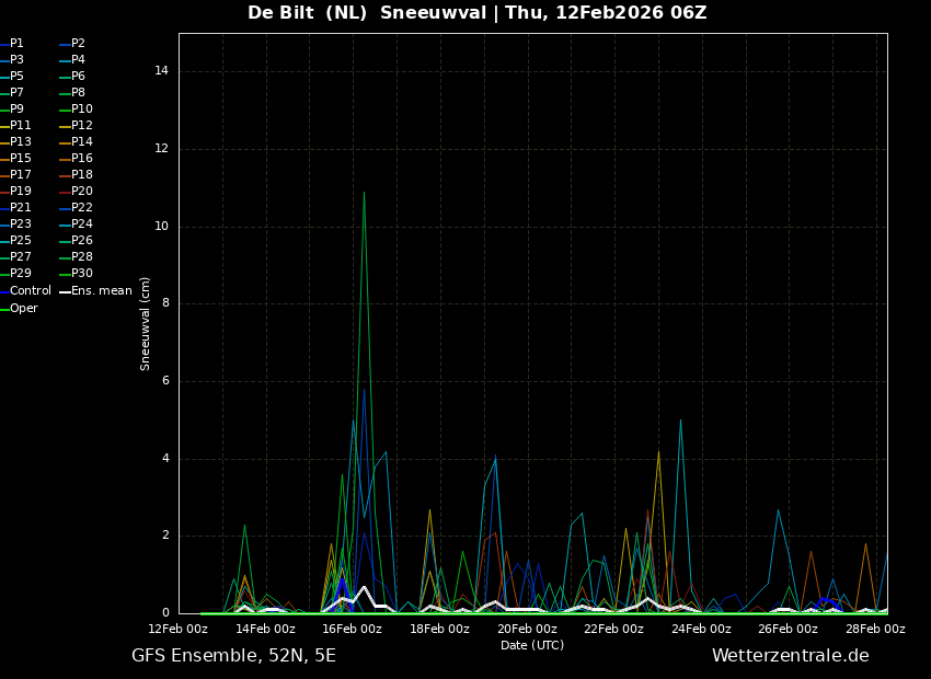 Overigens zou de neerslag zondagmiddag ook in de vorm van sneeuw kunnen vallen en zijn er nog wat signalen voor sneeuw, wat gezien de temperatuur op die momenten, dan om natte sneeuw zou moeten gaan.