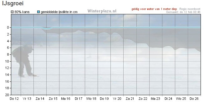 Mijn broer meet voor mij de ijsdikte in het natuurgebied achter zijn boerderij. Nog altijd meet hij 5 cm ijsdikte.