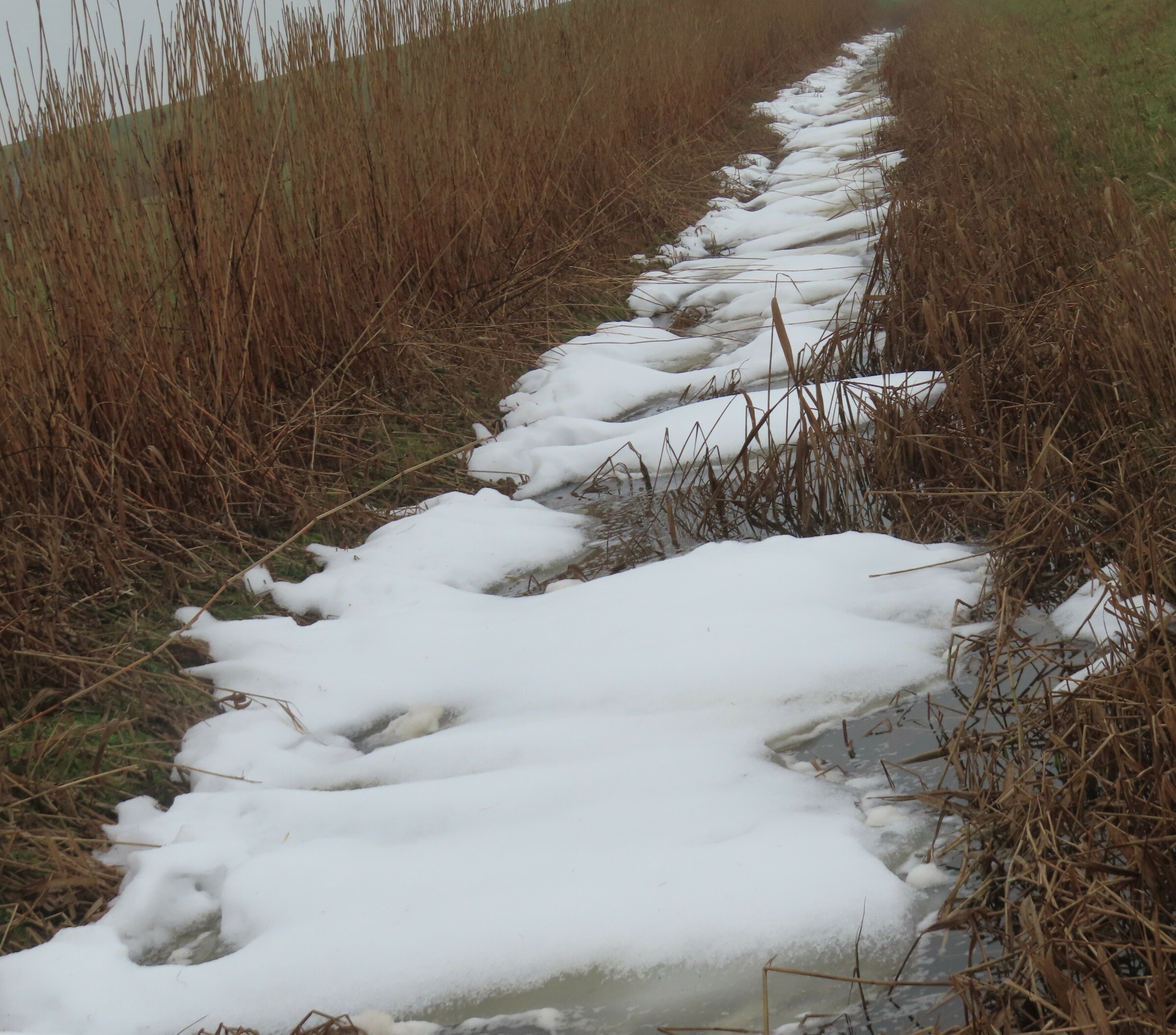terwijl sloten nog vol sneeuw liggen,