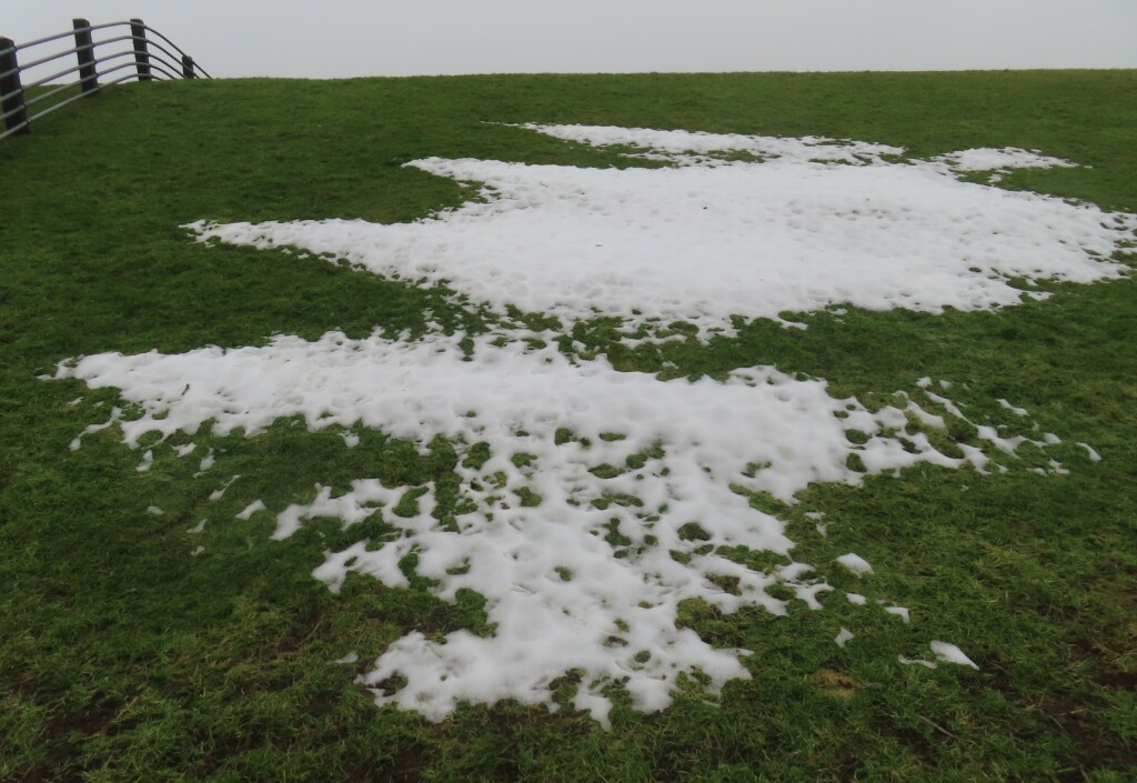 en de plensregen het sneeuw op de dijk probeert weg te spoelen