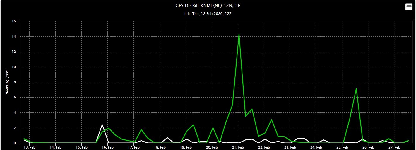 DMO Oper GFS1212 - De Bilt: dag 11 en verder | neerslagsom hele run