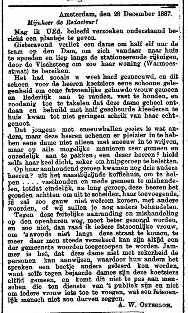 Een brievenschrijver naar het Nieuws van den Dag.