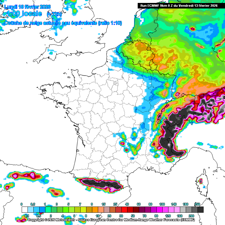 de neerslag valt zondag grotendeels als (natte) sneeuw bij temperaturen in Vlaanderen rond 0 of +1 graad, timing in de late namiddag of avond. Tijdelijk sneeuwdek mogelijk volgens deze berekening. De website van het ECMWF ligt plat dus dan maar een kaartje via meteociel: