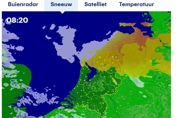 Het sneeuwt heerlijk door hier. Gaat ook nog wel even zo door volgens de radar. Eens kijken hoeveel invloed de zon krijgt in de loop van de ochtend door instraling.