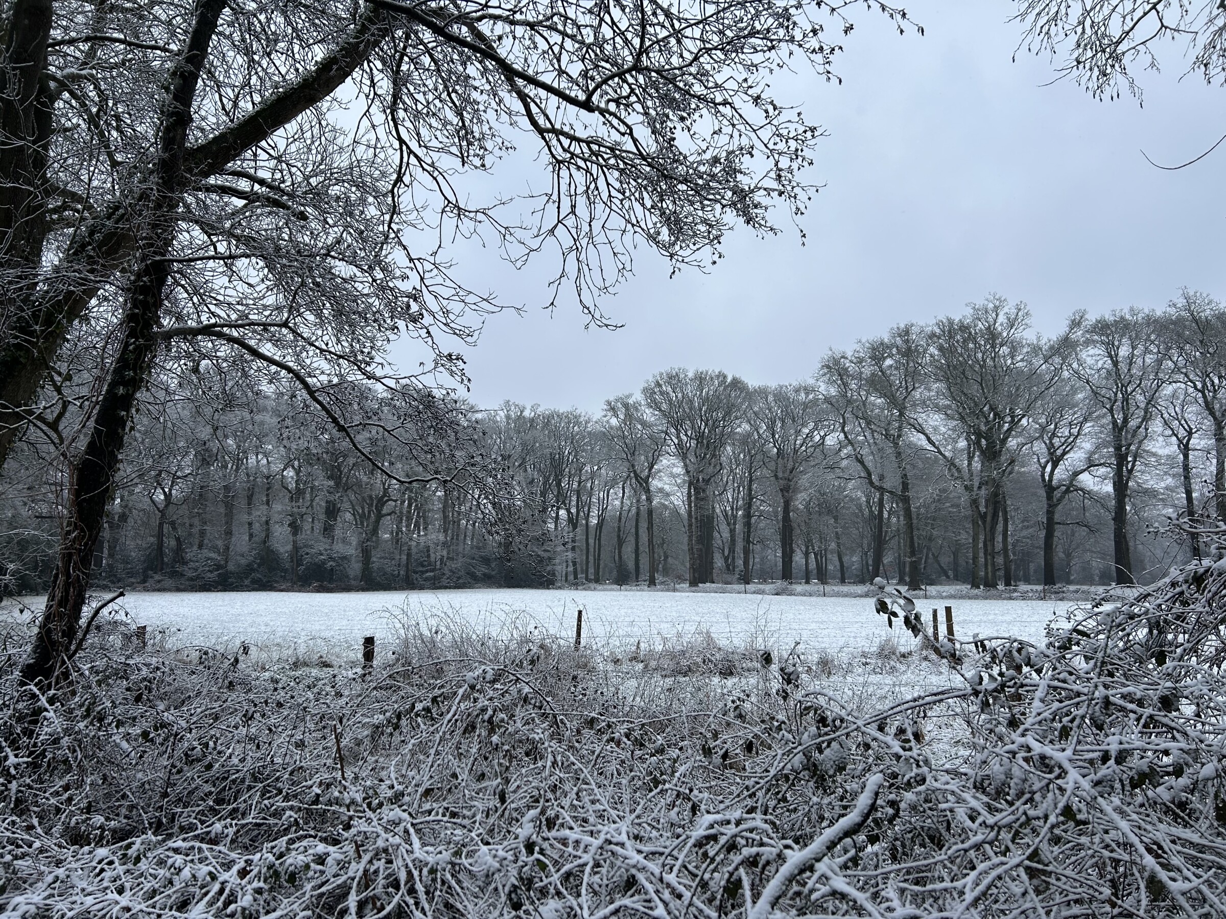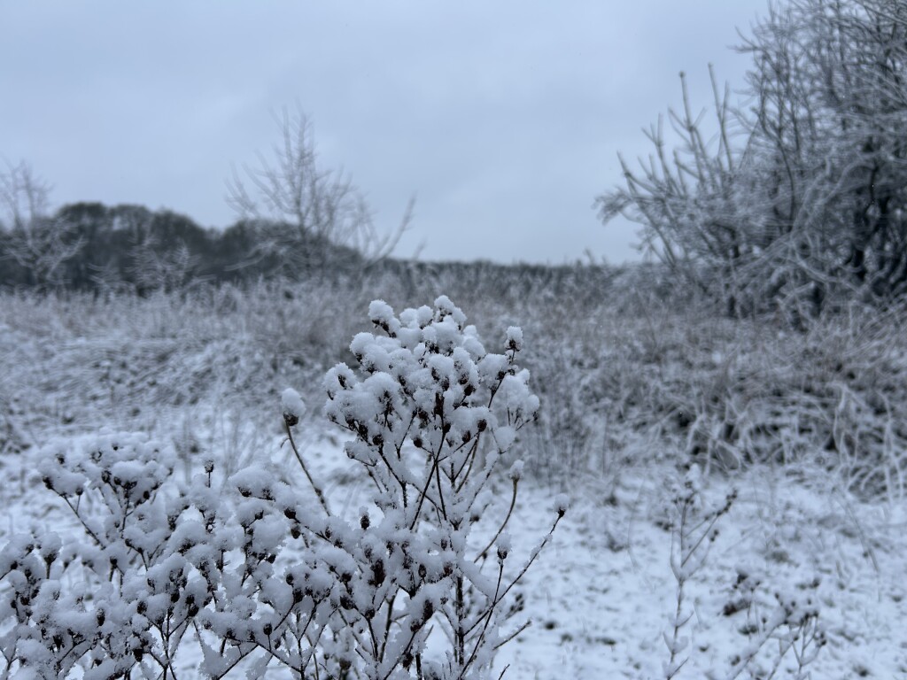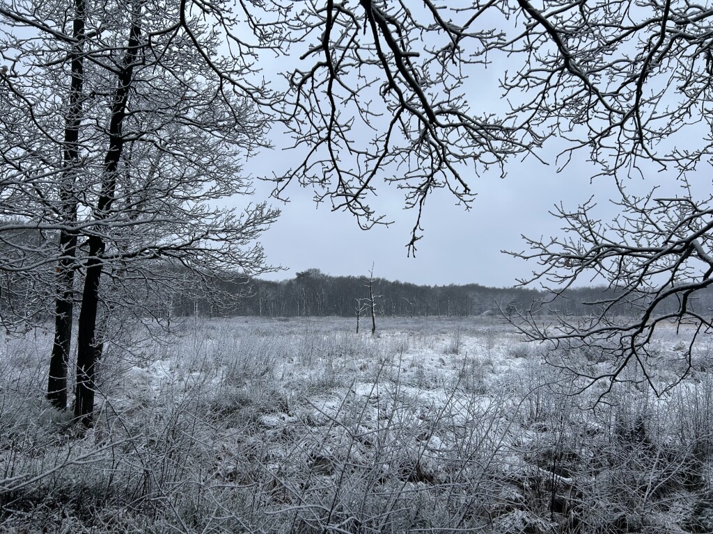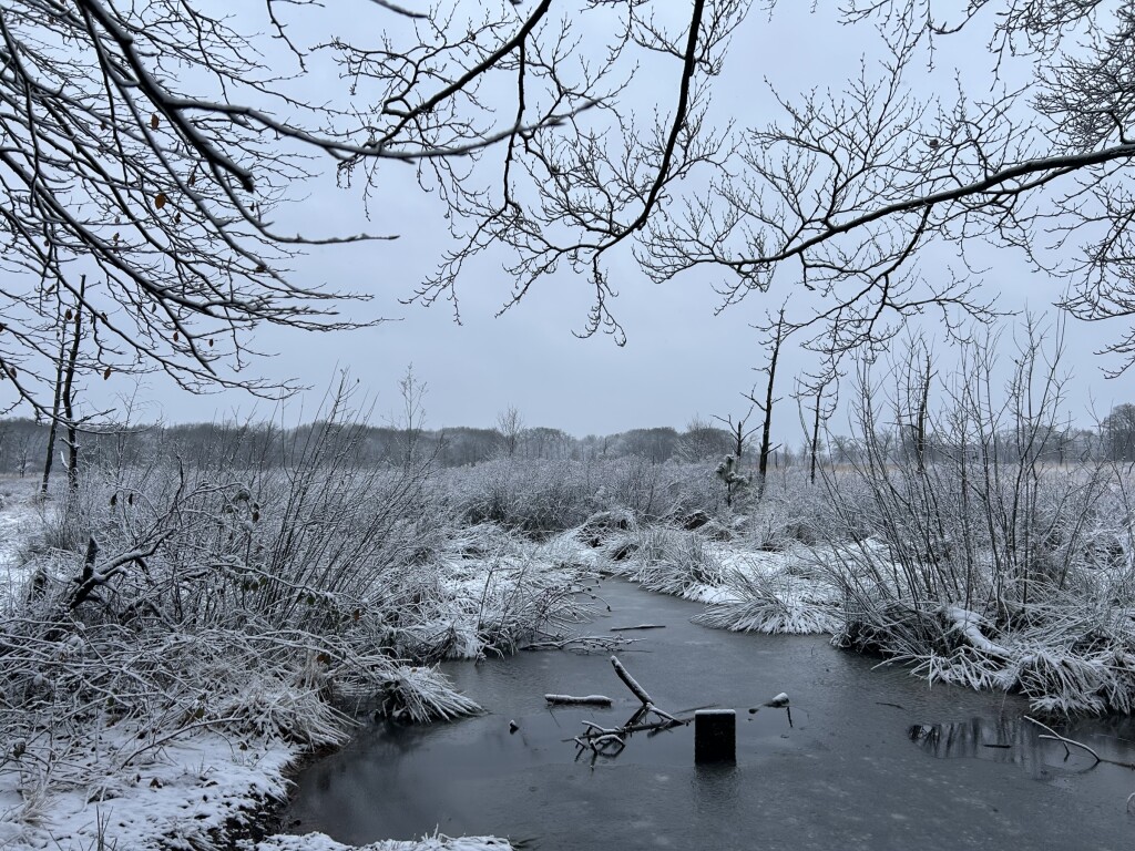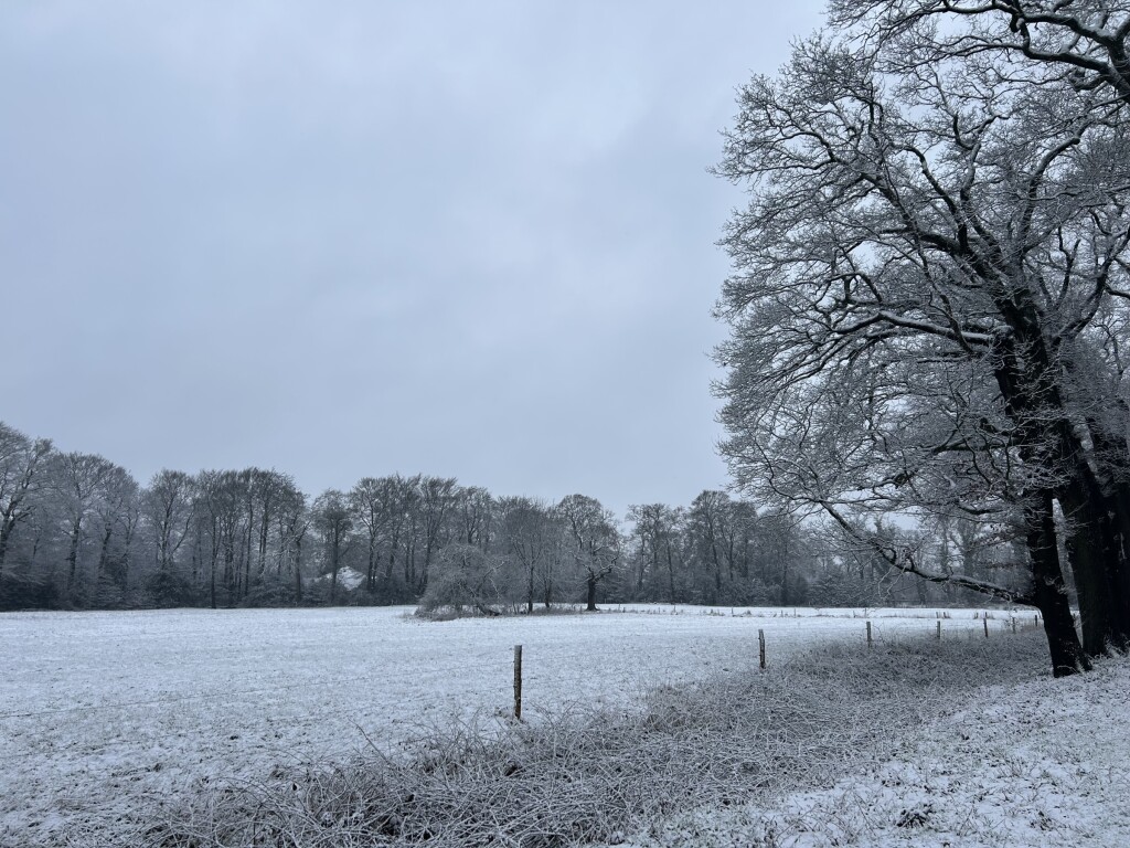 Leuk laagje van zo’n 2cm geeft een mooi winters beeld in de omgeving van Glimmen, gemeente Groningen. Nog geen tekenen van druppende dooi bij exact 0,0°C en nog wat lichte sneeuw.