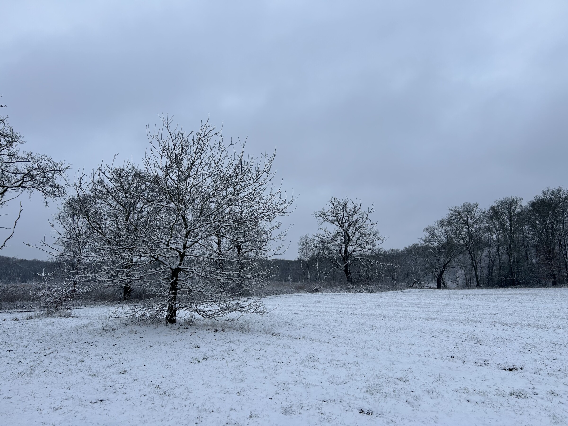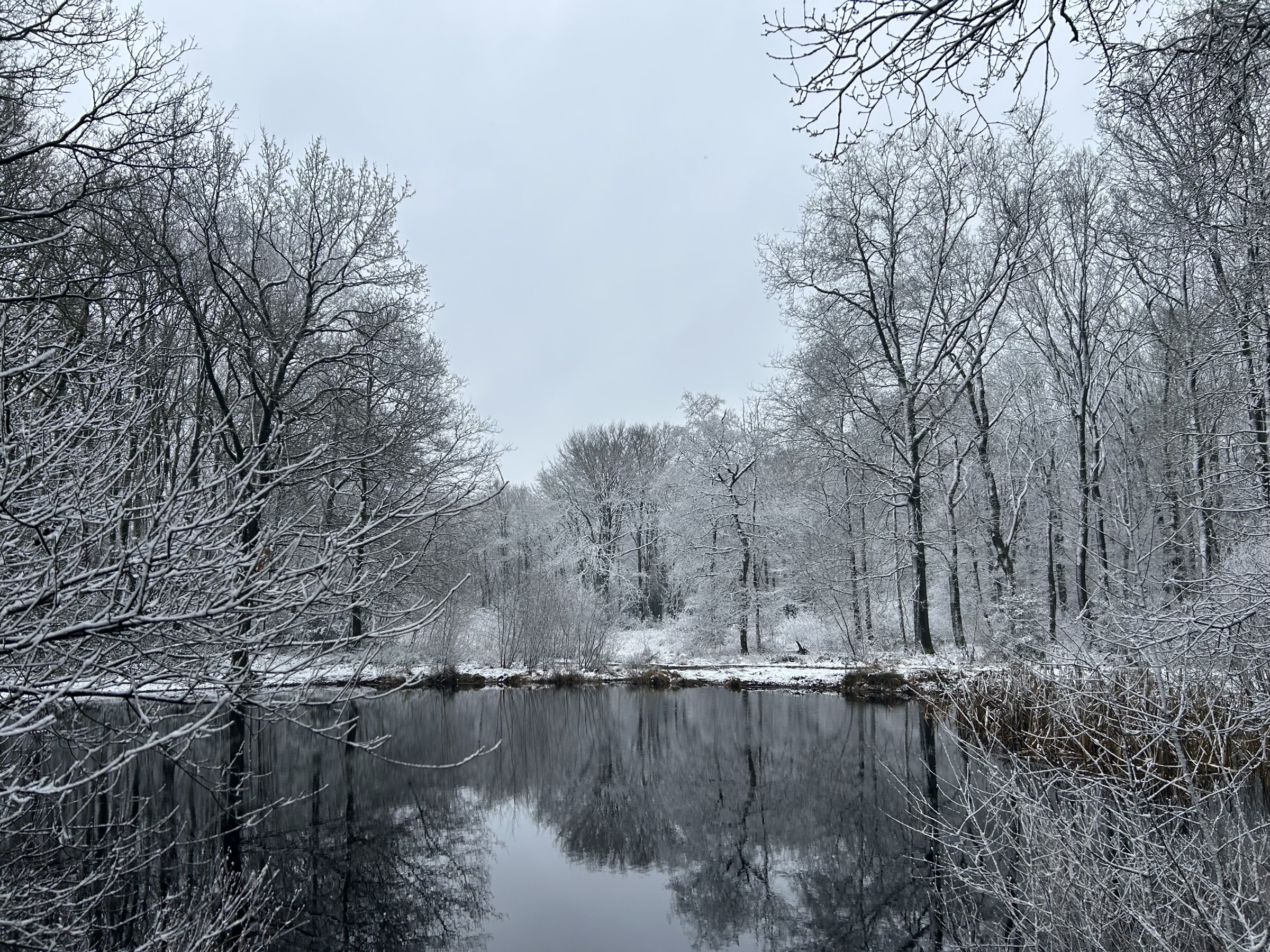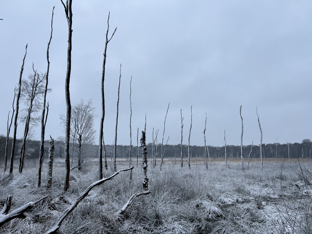 Leuk laagje van zo’n 2cm geeft een mooi winters beeld in de omgeving van Glimmen, gemeente Groningen. Nog geen tekenen van druppende dooi bij exact 0,0°C en nog wat lichte sneeuw.