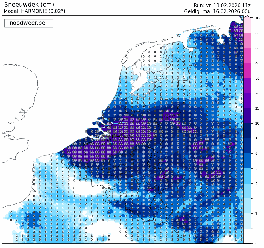 13z duidelijk minder, maar nog steeds 5 cm of meer voor heel België