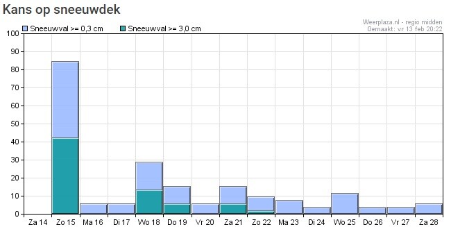Zondag is er toch een behoorlijke kans op significante sneeuwval. Dit zal ongetwijfeld ook de onzekerheid voor het verdere verloop veroorzaken.