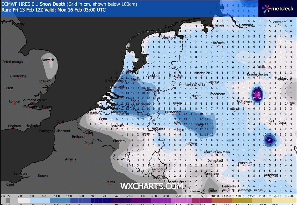 De kaarten lijken zeker nog niet geschud. Ik heb iedere keer de hoop dat de winter voor het gehele land nog eens een uitbraak doet en had de hoop eerder deze week al opgegeven maar stilaan wordt het toch weer leuker en zeker deze sneeuwkaart die Stefan eerder postte is voor mijn omgeving al helemaal goed gekeurd al moet ik dat nog zien. Door veel smelt (bodemwarmte) en temperatuur boven het vriespunt zal het niet tot een dek komen die deze kaart in cm. aan geeft denk ik.
