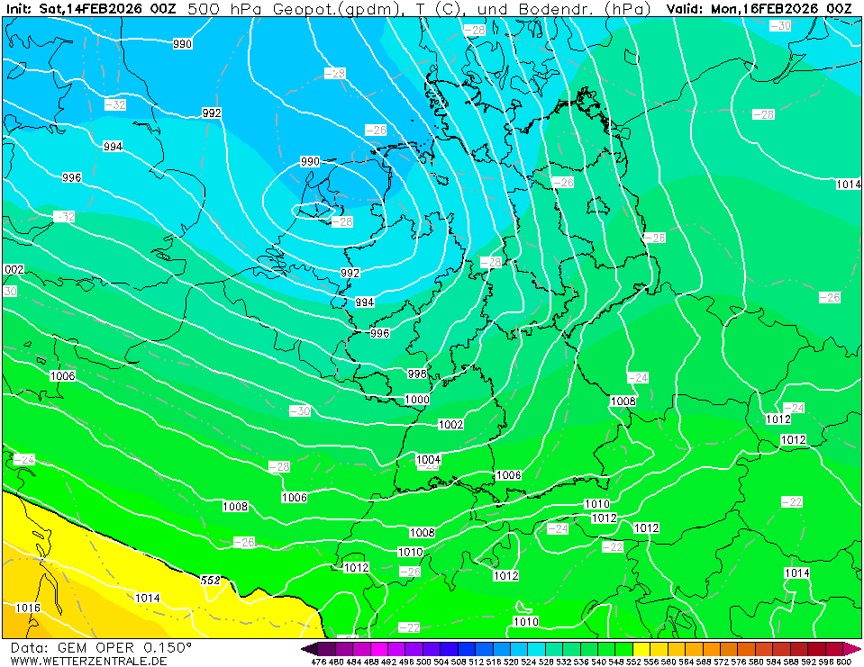 Actueel zit EC wat beter op de wolkenbasis en -bedekking dan Ha43, met name op zee waar de laatstgenoemde veel te weinig bewolking berekent. Hierdoor zal het boven land pas in de loop van de ochtend van het noorden uit echt gaan opklaren, i.p.v. het direct zonnige beeld dat Ha43 schetst. Verder zou de lichte (mot)sneeuw die langs de oostgrens wordt berekent aan het einde van de nacht tijdelijk nog wat kunnen activeren o.i.v. CTC. Wat betreft de (winterse) buien behorende bij de CAD is het nog steeds onzeker of deze het land gaan bereiken later vanavond (runs zijn hier wat springerig in), dit zal waarschijnlijk aankomen op nowcasting. Veel significanter is de sneeuw van zondag in de loop van de middag , avond en nacht naar maandag. De verschillende berekeningen lopen nogal uiteen, waarbij Ha43 uiteindelijk het beeld van EC volgt en over het algemeen wat meer sneeuw berekent. EC is echter per run zeer wisselend, waarbij er drie varianten zijn. Twee waarbij er geen kleinschalig laag in de frontale vore ontstaat en er een trage (EC00/06) en snelle (EC18) variant is. De laatste berekent “slechts” een sneeuwdek van 1-3 cm , zeer plaatselijk 3-5 cm (voorkeur noordoosten) en de tragere variant op duidelijk meer plaatsen 3-5 cm. De variant met het kleinschalige laag komt op veel plaatsen met 5-10 cm. Deze variant is actiever en de neerslag verplaatst zich dus veel trager, waarbij de occlusie een W-O oriëntatie krijgt boven het noorden. Deze variant is echter wel een uitbijter in het EPS van EC12. Hierbij moet wel rekening gehouden worden dat de eerste sneeuw bij alle varianten waarschijnlijk deels sublimeert en zal smelten (wegdek is in de middag ruim boven nul). EC zit qua sneeuwdek ook vaak wat aan de hoge kant en van bovengenoemde waardes kan zeker nog wel een enkele cm afgesnoept worden. Voorlopig lijkt me 1-3 cm en plaatselijk 3-5 cm (vooral in de noordoostelijke helft) de meest realistische optie. De grote verschillen per run worden waarschijnlijk veroorzaakt door subtiele verandering in de dynamische forceringen (jet en hoogtetrog). Verder kunnen de condities ook extra slecht zijn door een redelijk stevige zuidoostenwind tijdens de sneeuwval.