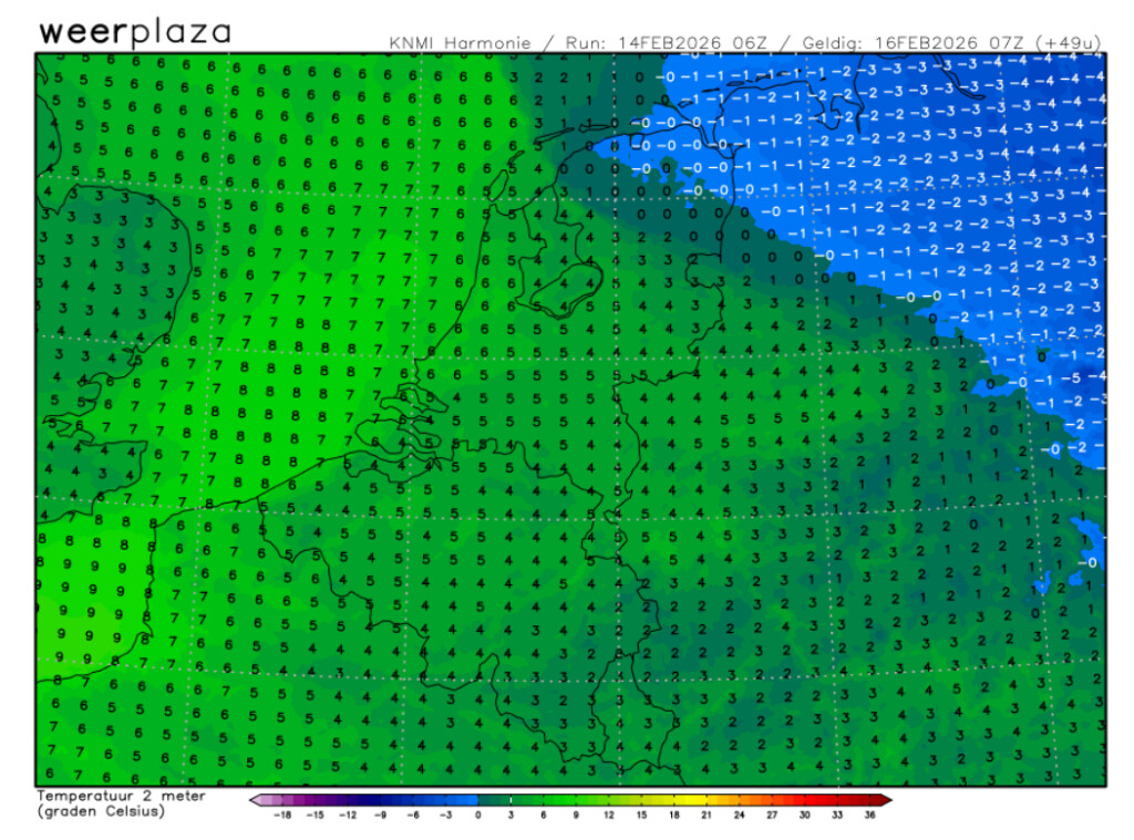 Neerslag voor Nederland pas rond of na zonsondergang, wat zeer positief is voor accumulatie. Maar België en de meeste delen van Nederland zullen een vies dooiend sneeuwdek zien bij daglicht aangezien de dooi en regen er direct ongenadig achteraan komt. Voor Vlaanderen overigens nog wel aardig aangezien de sneeuw al in de middag begint.