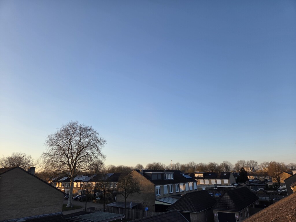 Blauwe lucht bestaat nog, Tact binnen hier 20C met de zon op