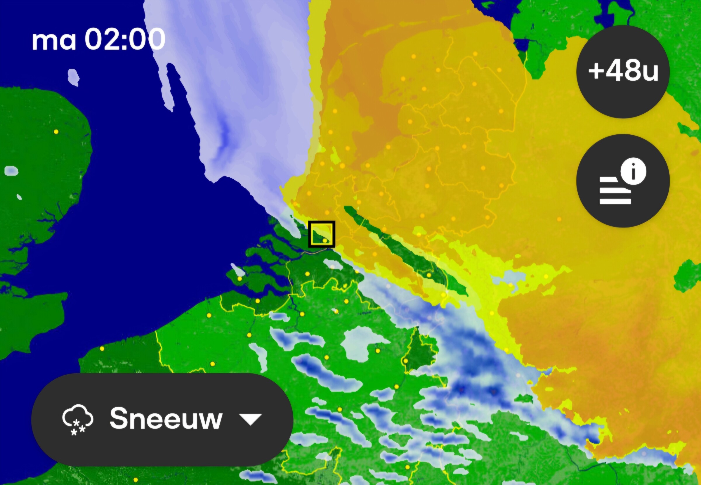 Neerslaggebied zou 100% in de vorm van sneeuw moeten overtrekken hier. Gelukkig dan niet overgaand in regen. We zullen zien.