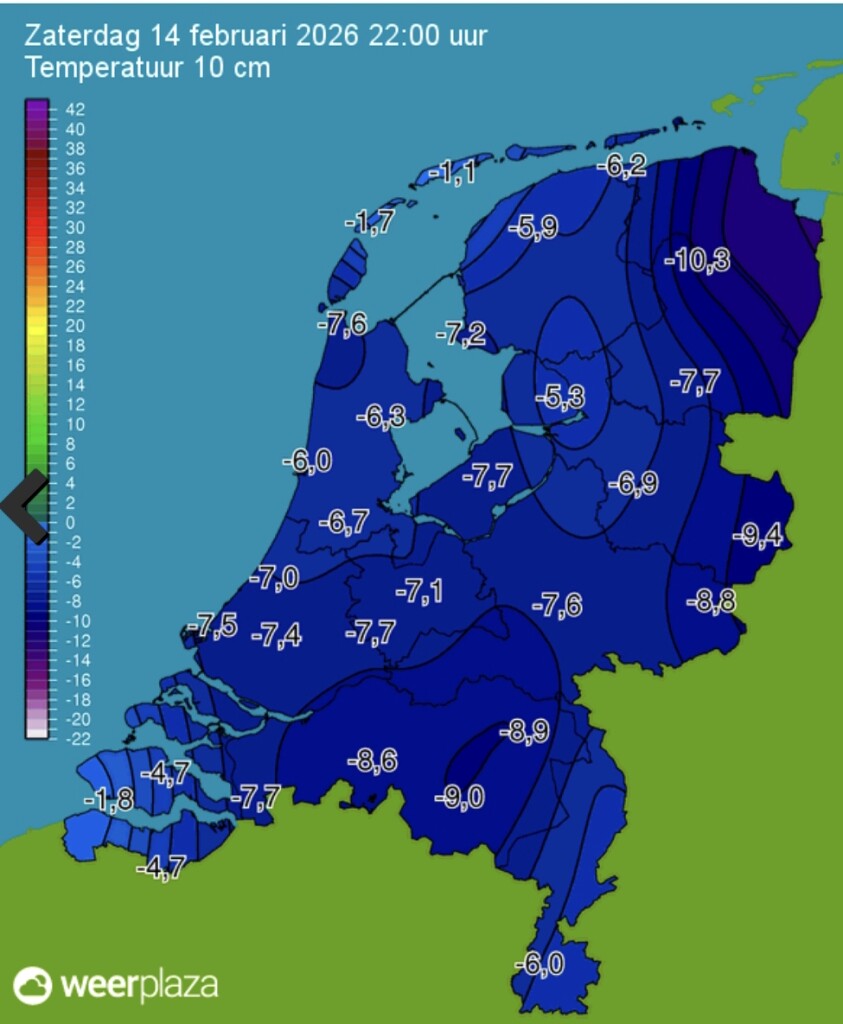 Hier -4,1°C, we gaan richting matige vorst
