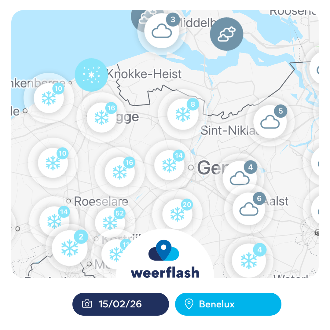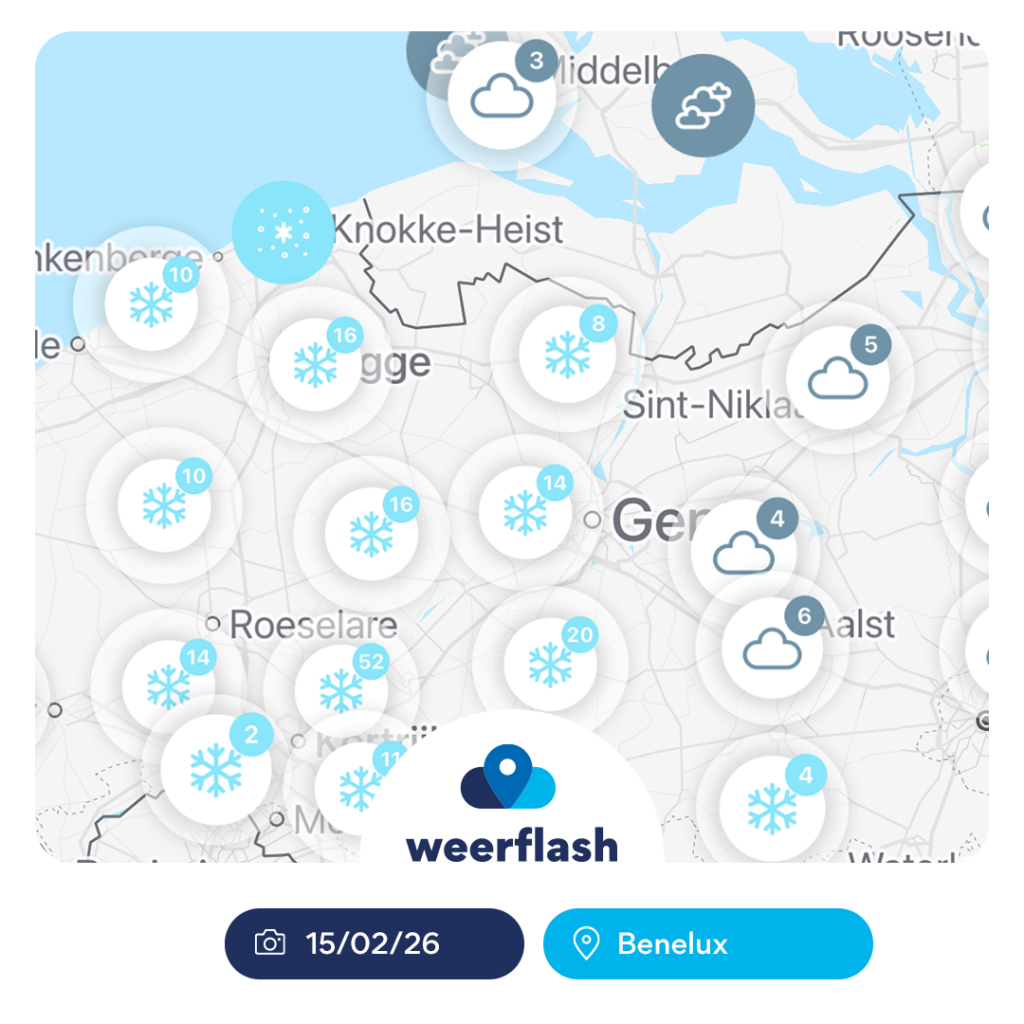 Aantal meldingen in Weerflash gaat door het dak. Daarna een nieuwe potentiële sneeuwzone vanaf de Belgische kust. ![]()
