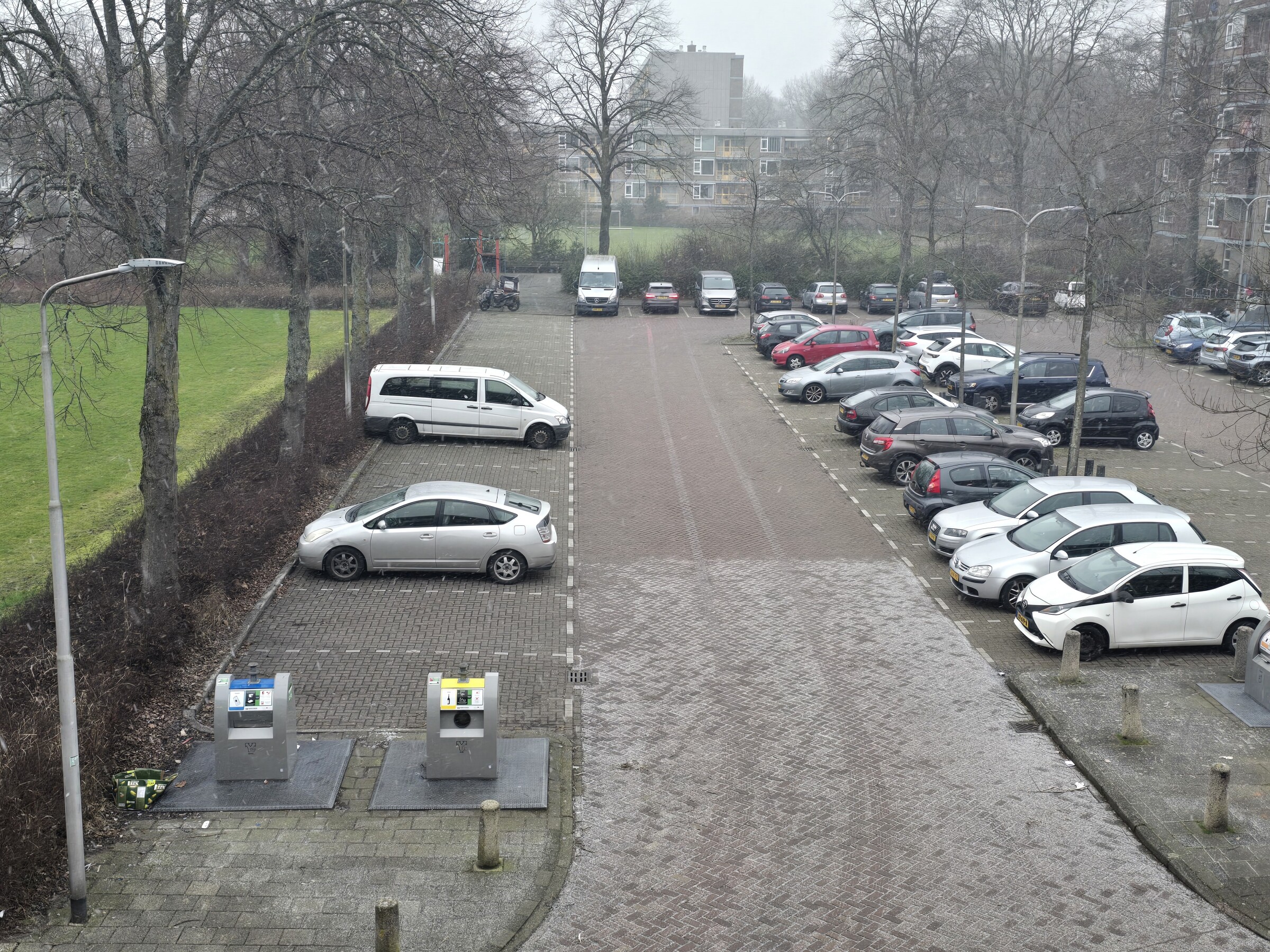 ...duidelijk te zien tot waar de zon vandaag geschenen heeft, en dat de heldere lucht voldoende uitstraling gaf om de grond in de schaduw koud te houden. Vanaf de eerste vlokken blijft het in de schaduwdoek al liggen.