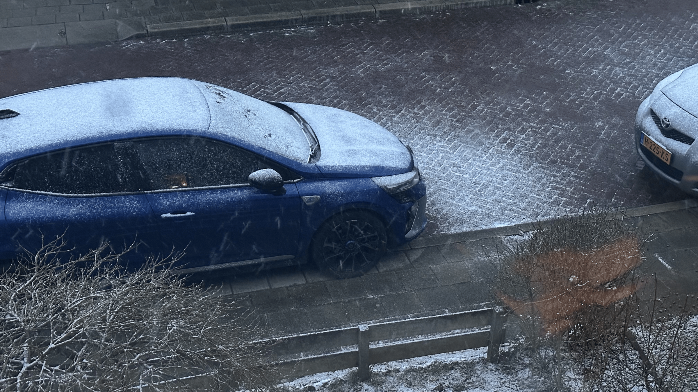Lichte sneeuw nu, die gelijk al blijft liggen bij +2,8 C