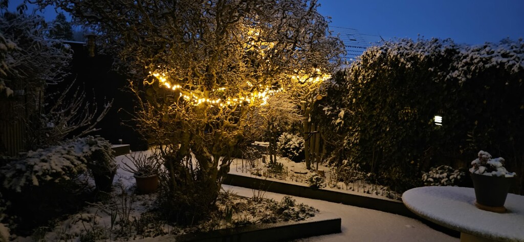 Hier is het gedaan met sneeuwen. Een 2 cm op tegels